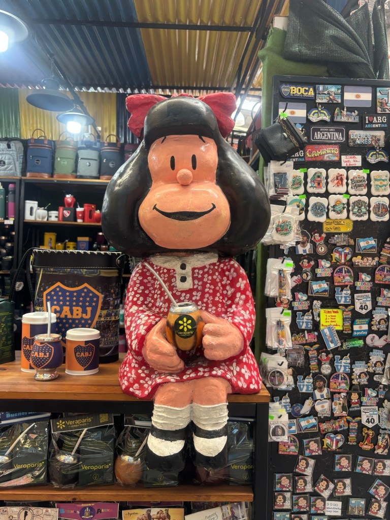 Our guide, Mili, (also pictured) said the line up for pictures can be an hour or more long. Mafalda’s friends represent different segments of the population.