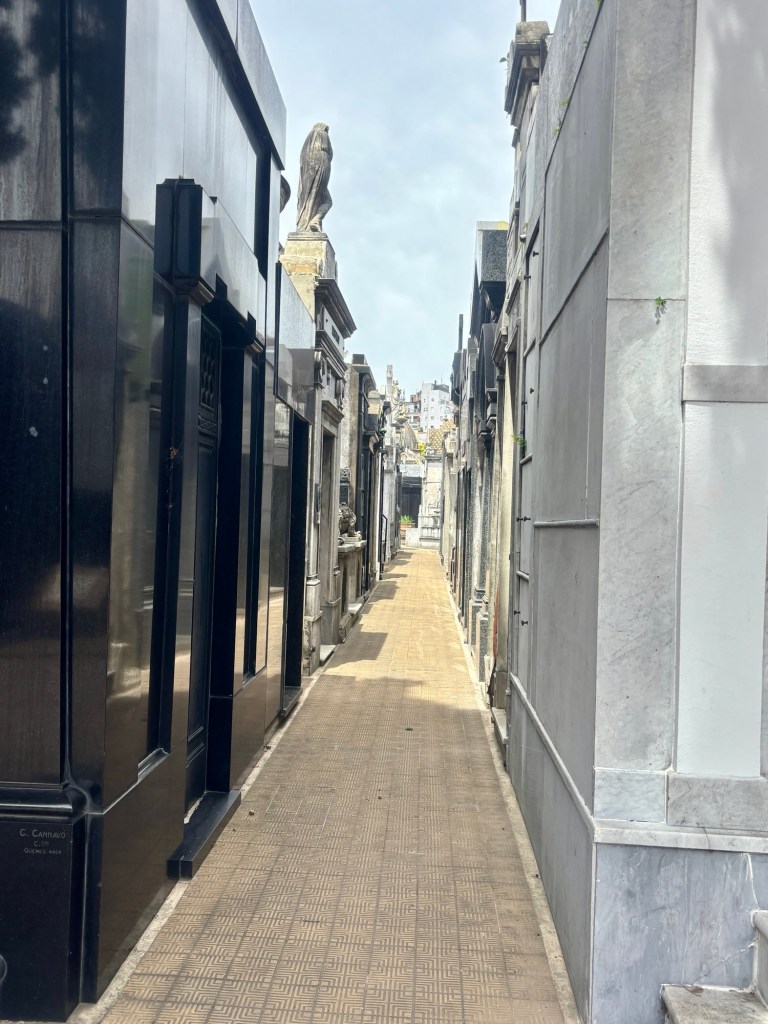 It was unlike any cemetery we had seen before with family crypts (all above ground) and narrow passages. Most were well kept.