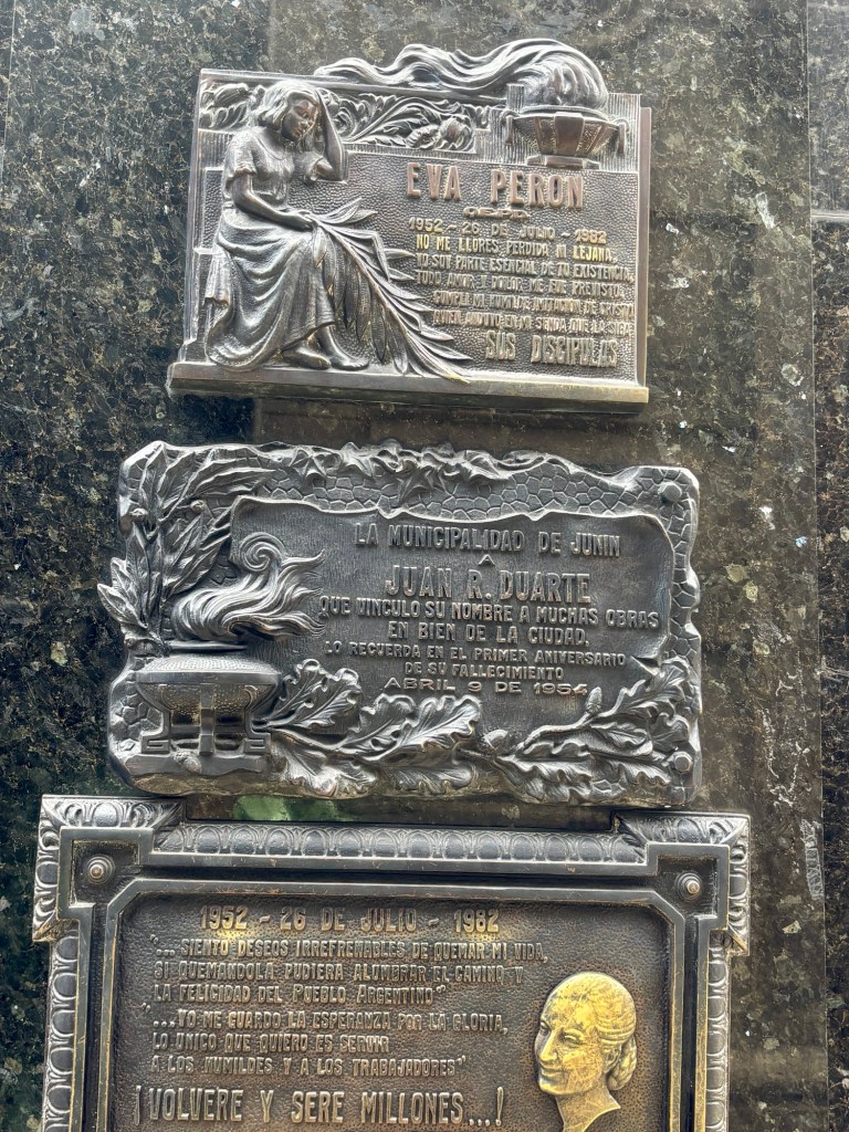 These pictures are of the Duarte family mausoleum in which the remains of Evita Peron are kept. It is less ostentatious than I would have thought, but this is her family’s crypt, not that of the Peron family. Our guide said Evita never said the words “Don’t Cry for Me, Argentina.” She did give a speech that could have been reasonably summarized that way, but not literally.
