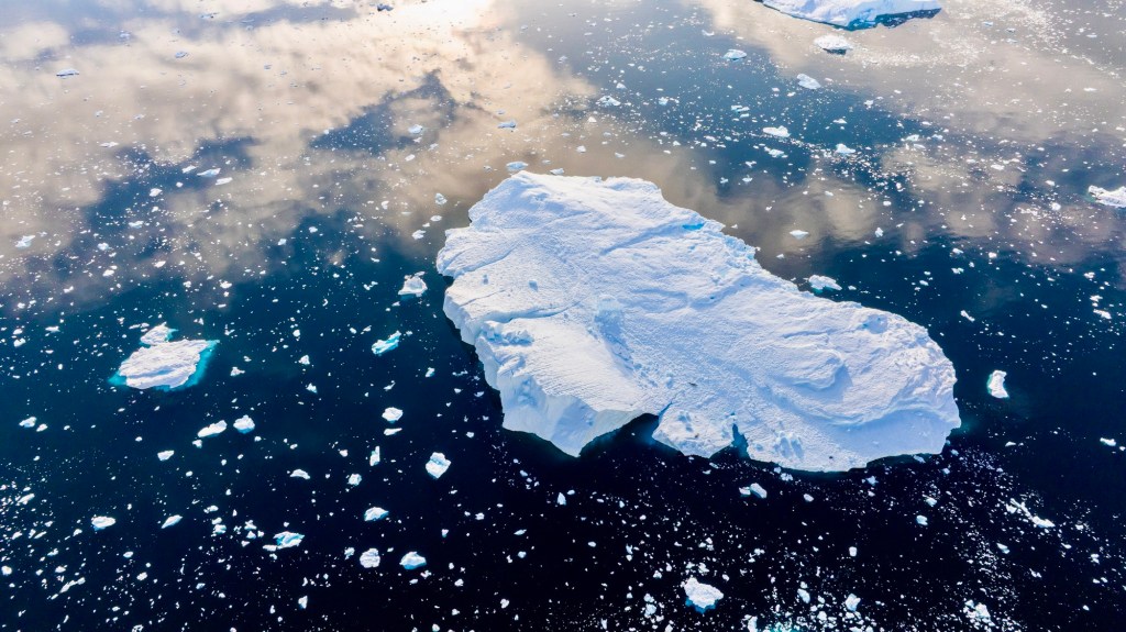 These flat patches of ice are frozen sea water and very different from icebergs.