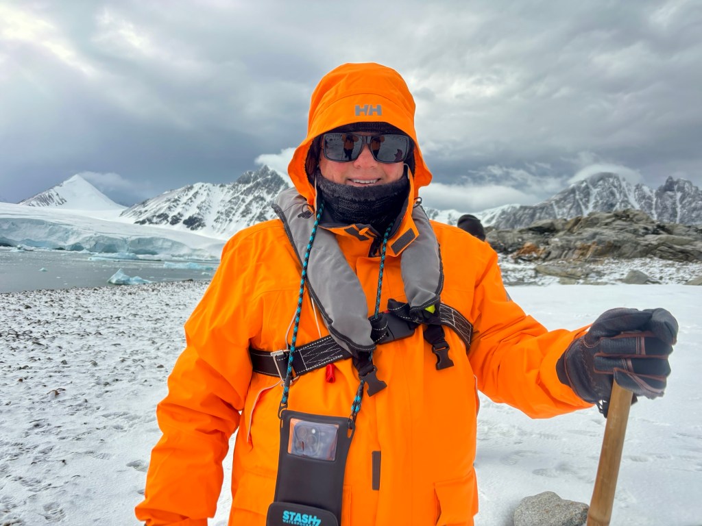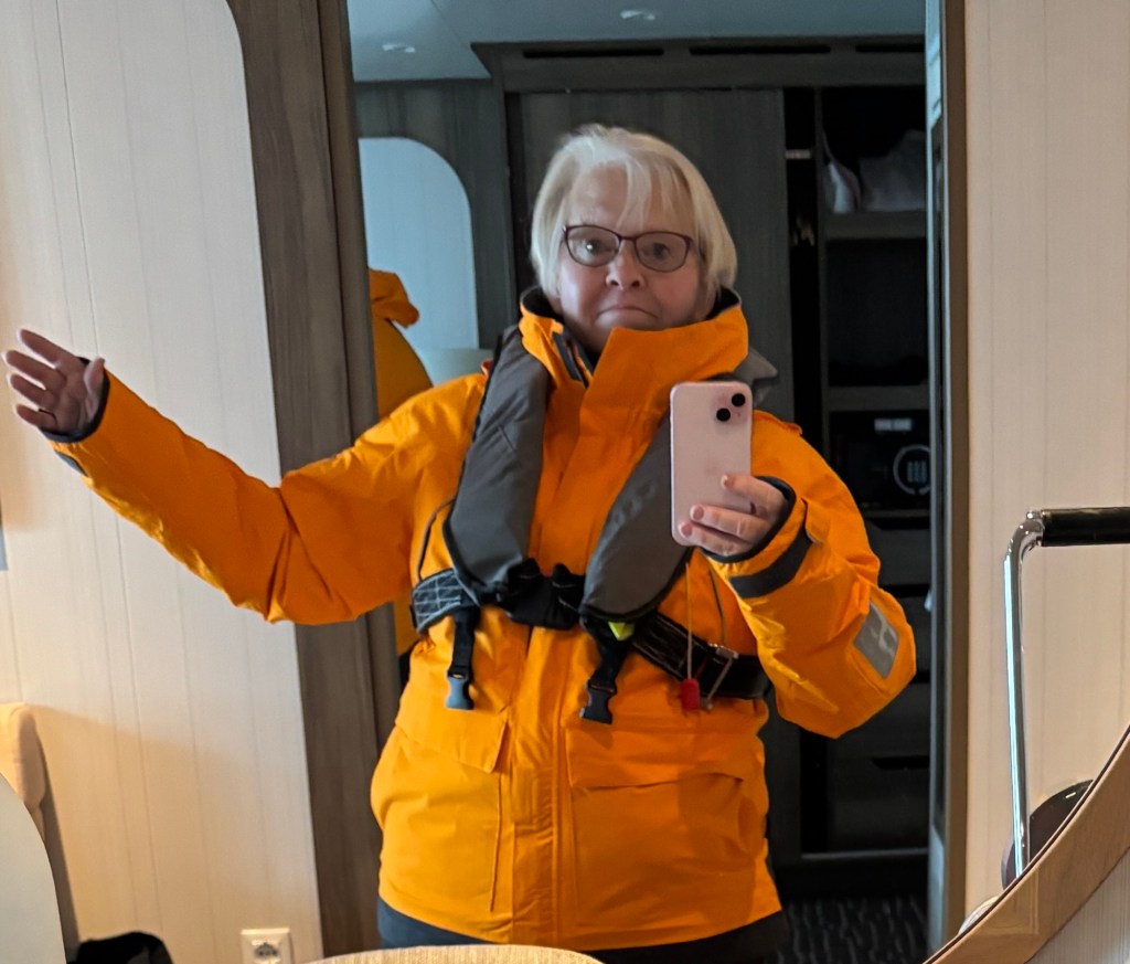 I am all dressed up with someplace to go! It seemed somewhat complicated at first to figure out our layers, our jackets, which gloves, which accessories, life jacket, and on and on. It seemed like a lot the first and second days but we got much better at it and learned we didn’t need to wear and take nearly as much as we did at the beginning.
