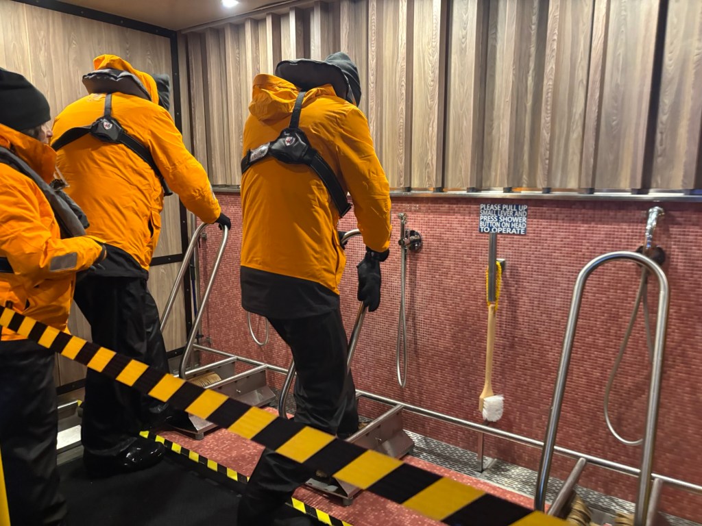 While waiting to leave the ship, we watched an earlier group decontaminate their boots as they returned.