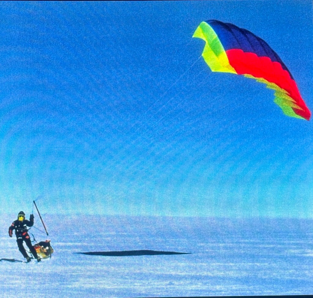 Reinhardt Messner skied 2000 miles across Antarctic, used kites and sleds.