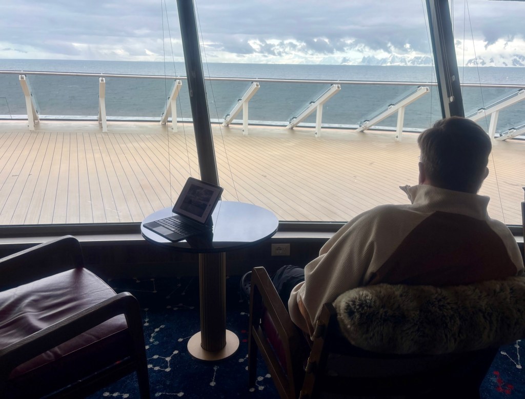 While most of the passengers were at a “Caviar and Bubbles” event, we grabbed some prime real estate in the Constellation Lounge. Actually, prime real estate on Venture was usually available. There were lounges throughout the ship which is a feature we really enjoyed.