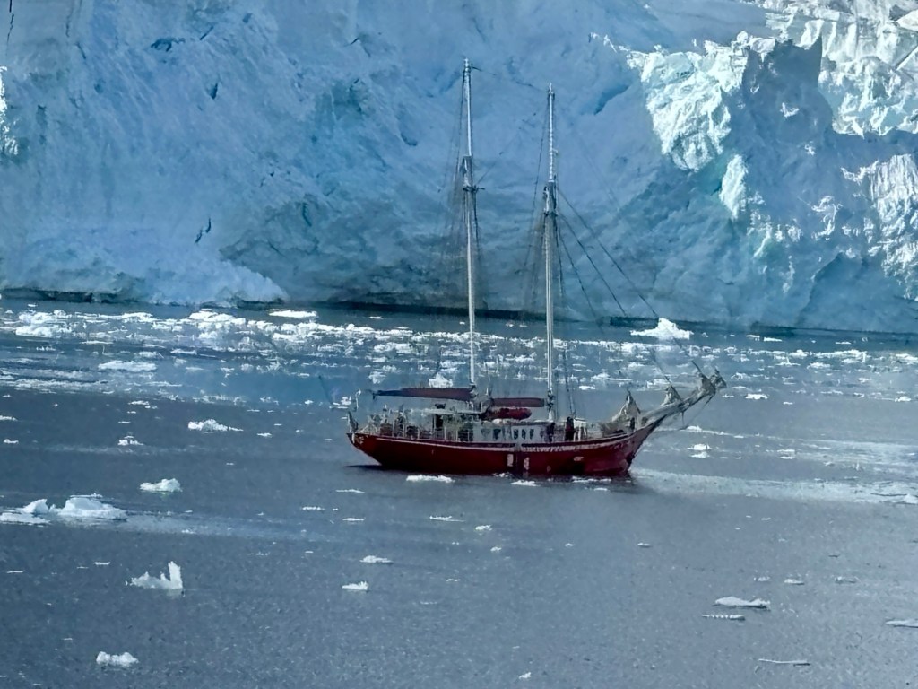 Seeing this ship was far more surprising than the glaciers. We weren’t the only people in Antarctica after all. While we were the southernmost ship in the world, we hadn’t seen any other signs of civilization.