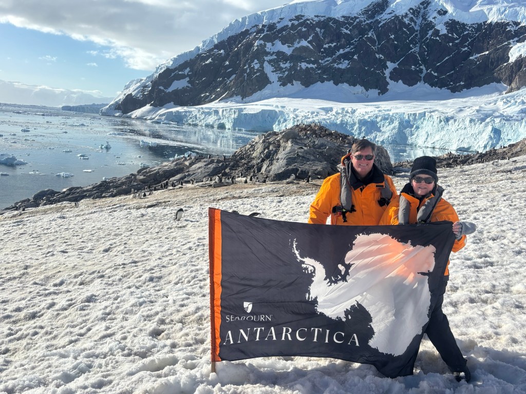 We had our picture taken with a Seabourn Antarctica flag, and enjoyed a glass of celebratory champagne.