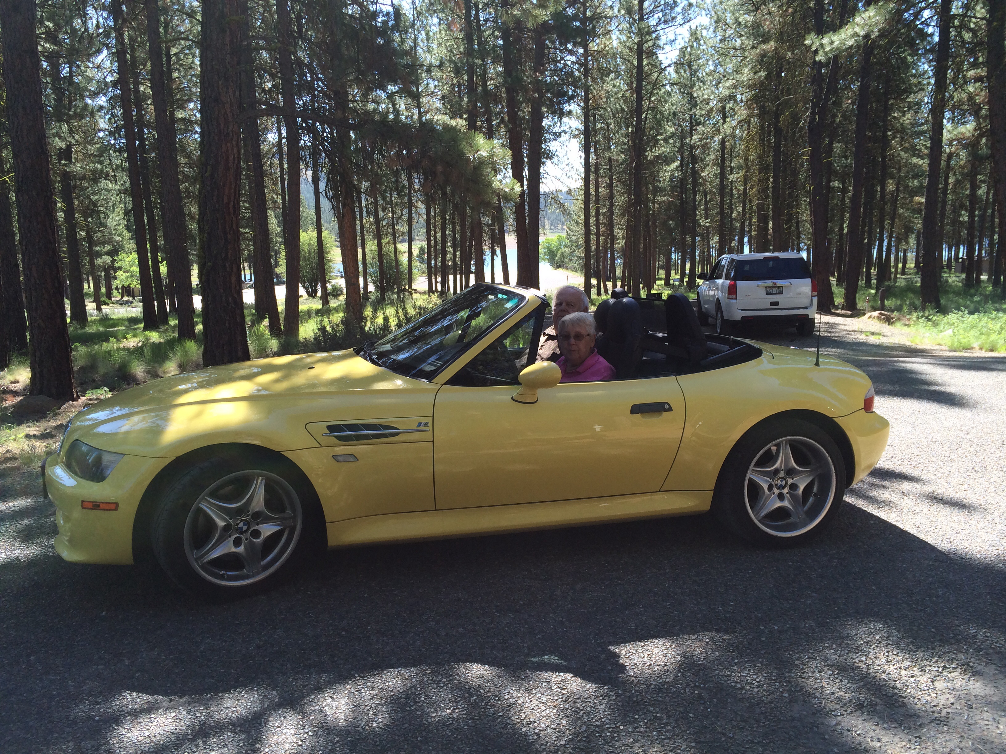 My parents, down to one car, decided they might like to try Randy’s BMW Roadster which had been for sale for several months. We picked it up at the consignment lot and left for Sumpter Friday late afternoon. In the end they decided they liked the idea of having a fun little yellow car and took it home to Vancouver.