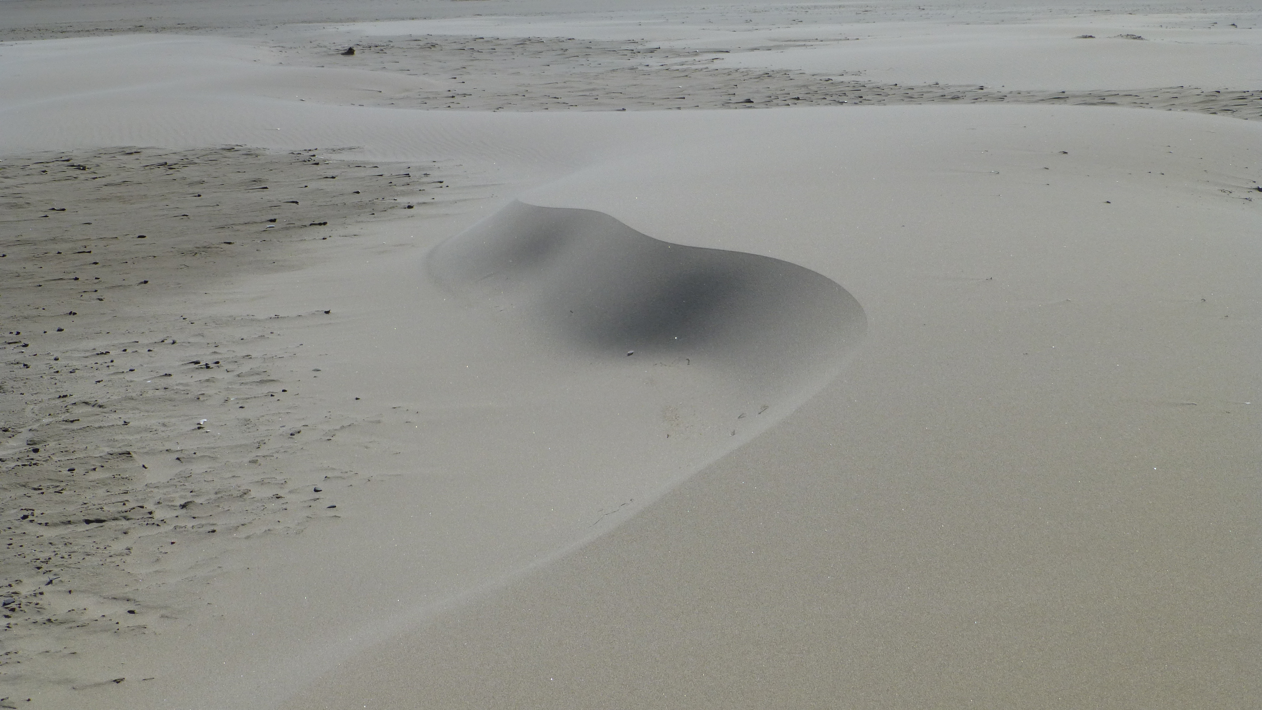 In an effort to keep our brains stimulated (yeah right…)we conducted a beach experiment today. The wind creates these wonderful peaks and ridges. We stepped on the ridge and walked down the small dune. We waited to see how long it would take for the winds to re-create the dune. It was almost perfect in 10-12 minutes.