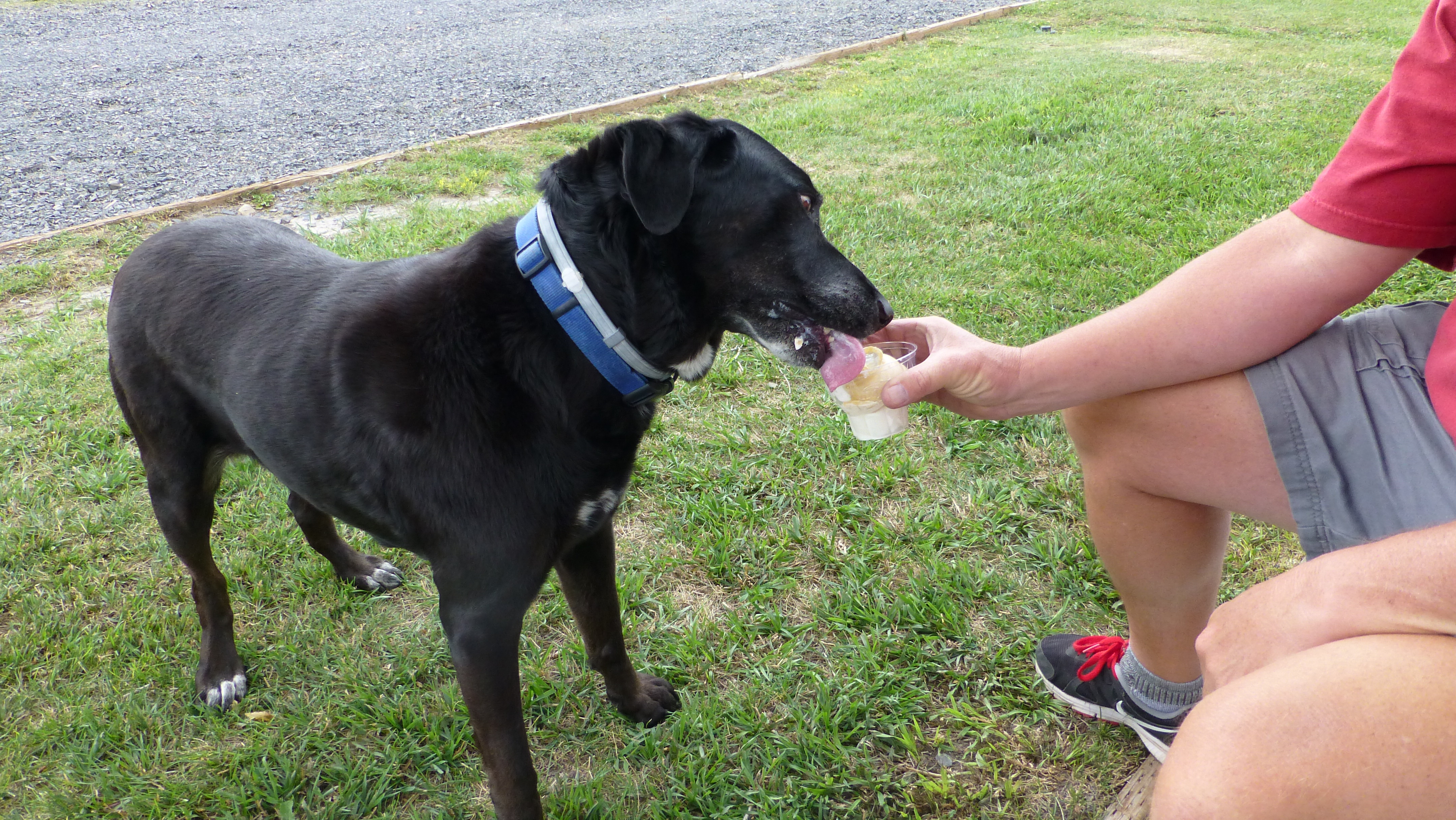 Once there, the three of us celebrated our survival with some ice-cream! I usually share with Elko, but he had his own this time.
