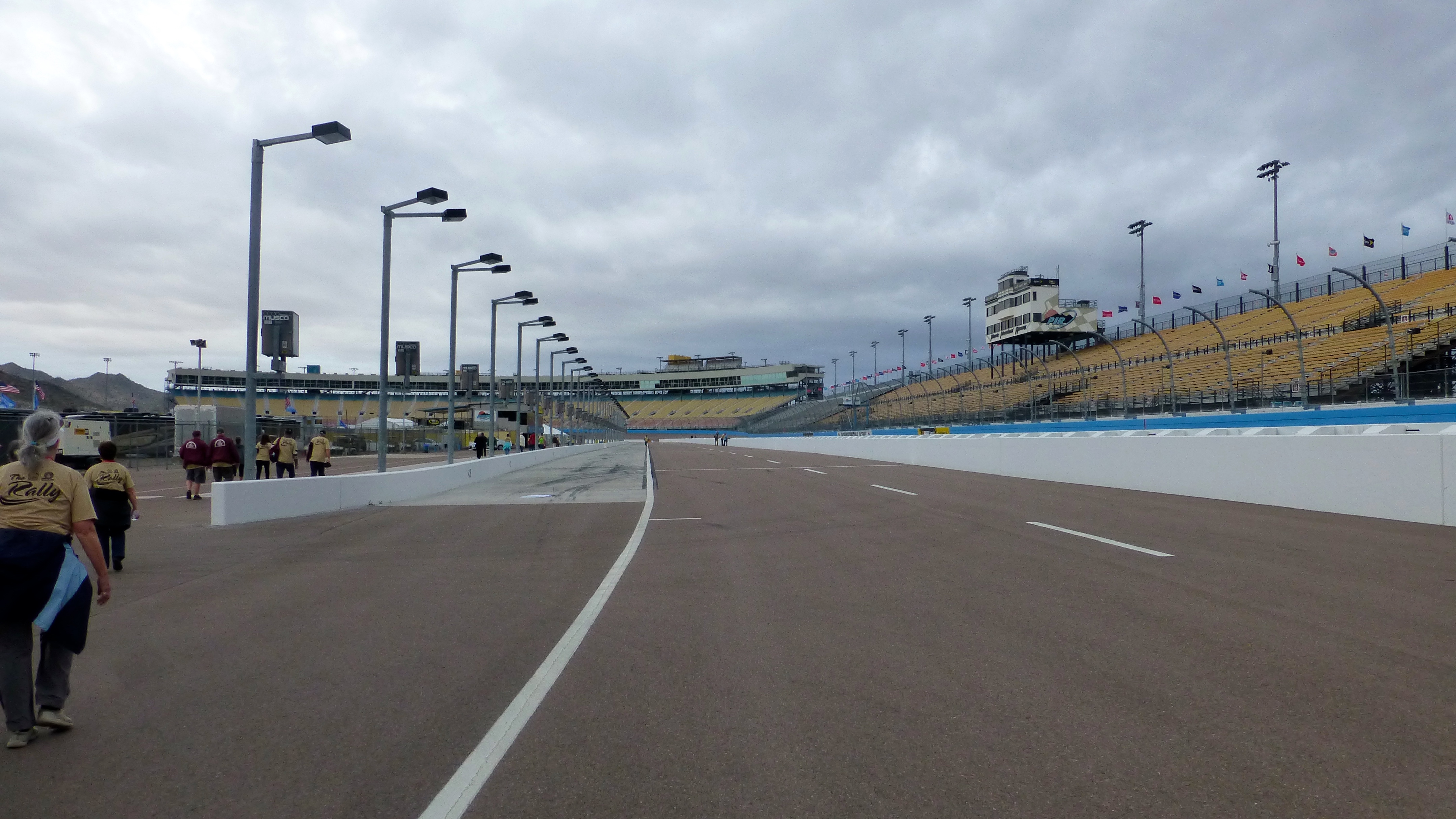 The grounds near the race track are huge! There are about 2800 RVs here this weekend and we barely make a dent in the stands or the parking areas. Randy and I were guessing that the rigs here are 85% motorhomes, representing hundreds of millions of dollars. The NASCAR race in Phoenix is in 2 weeks and people are already starting to show up in the outer parking areas. There is even a huge Safeway Tent that revs up as a regular grocery store during the race weeks.
