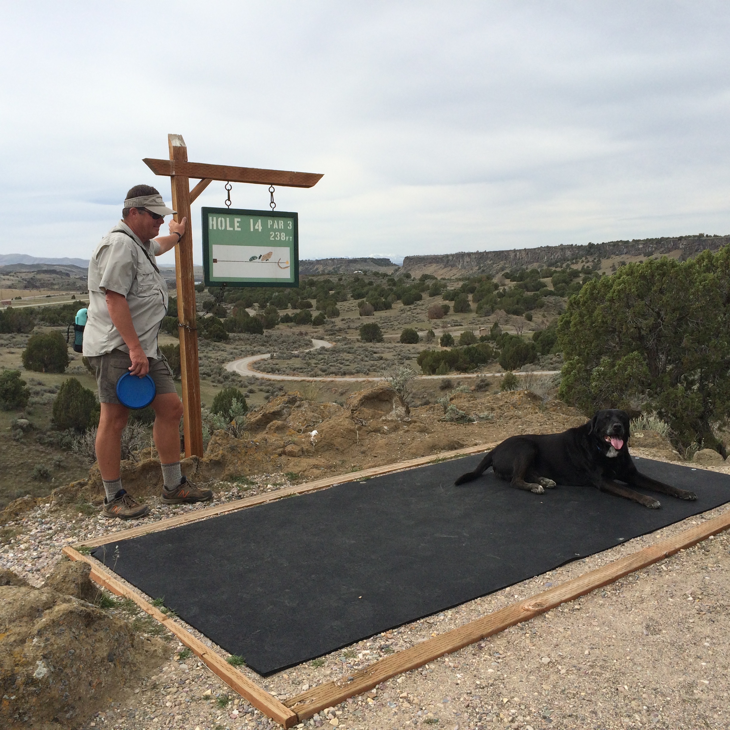 Elko came along and loved finding our errant throws – mostly mine! By the time we got to the 14th tee, he was ready for a rest.