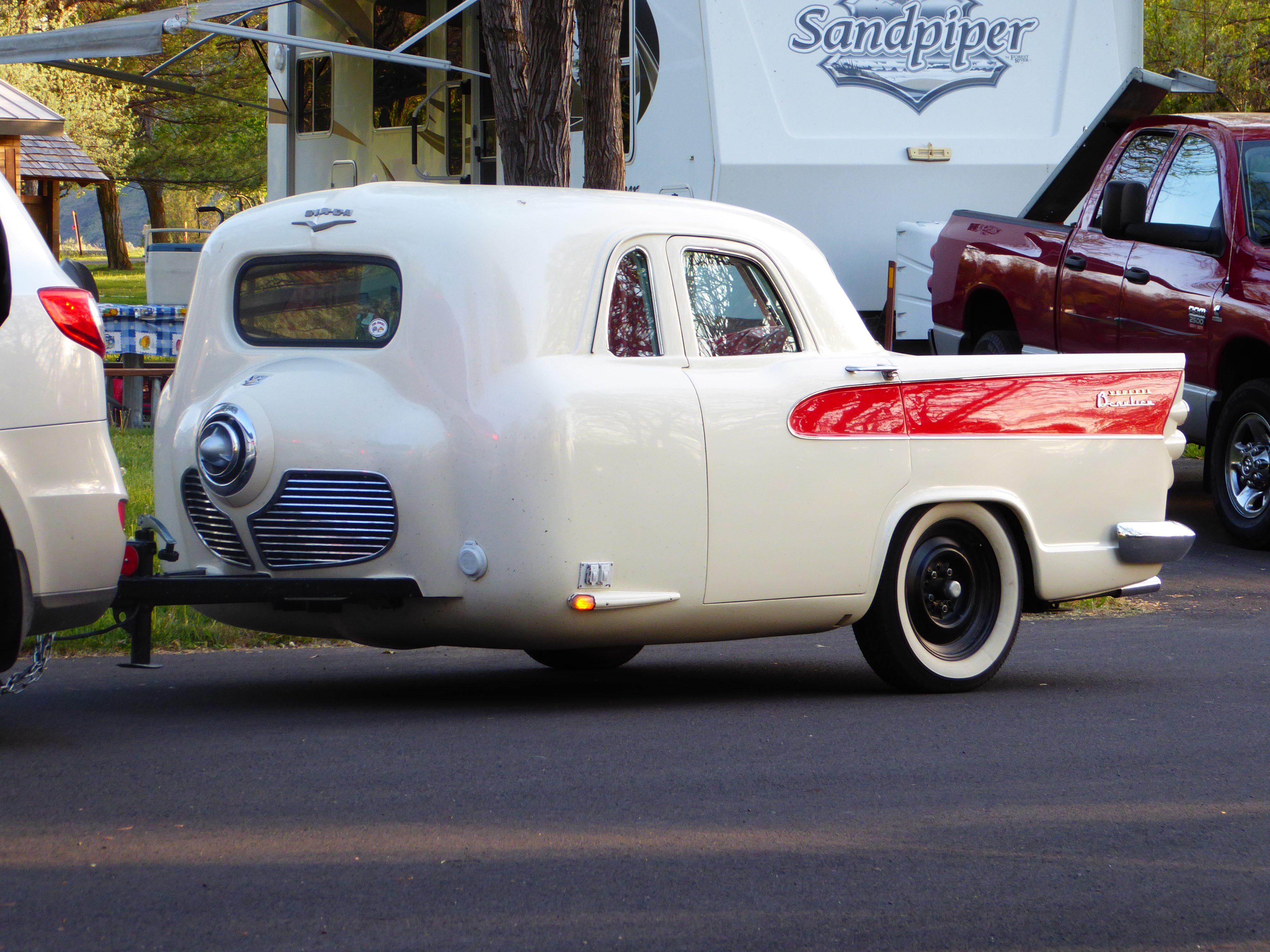 From our site we see almost everyone who comes in and out.   We have seen some interesting rigs, including this custom “trailer” made from parts of 10 different cars.
