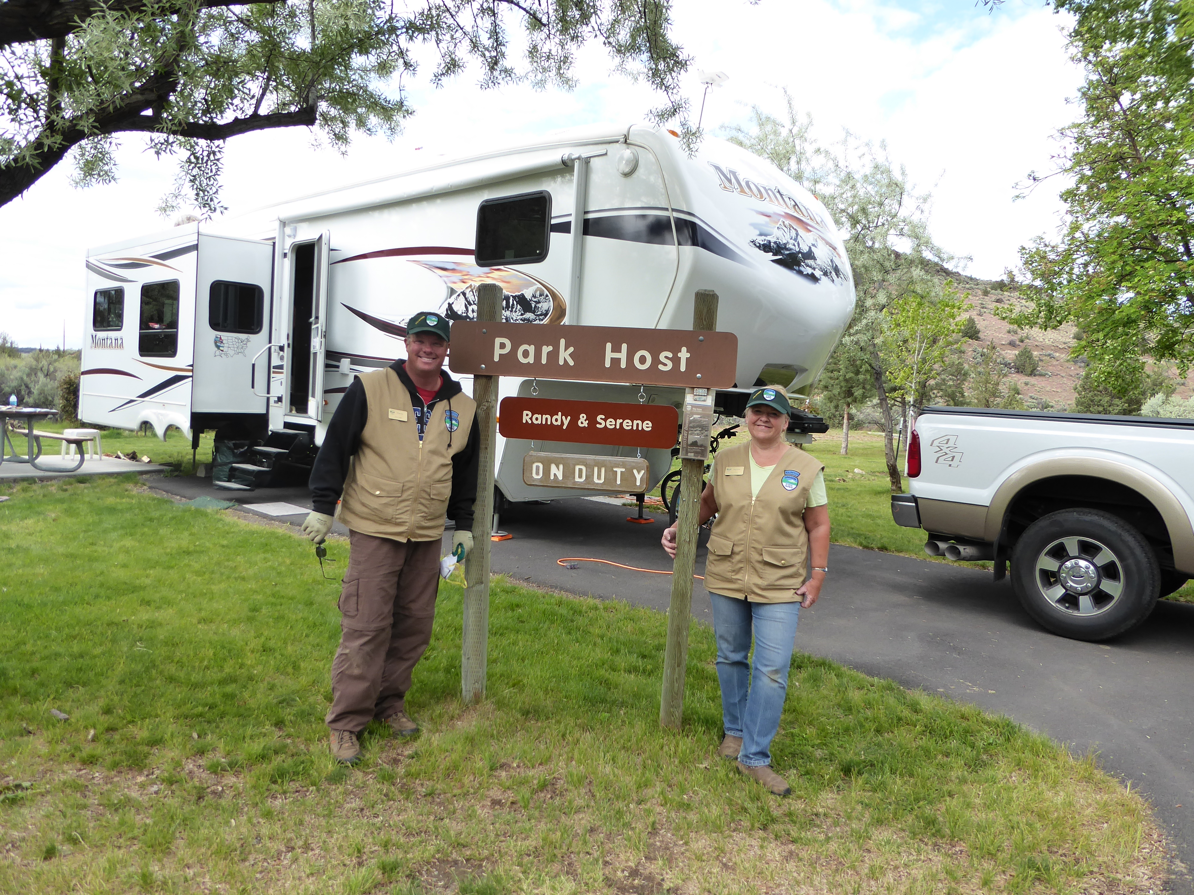 For our free site, our commitment is 4 hours per person, 5 days a week –  and that is about what I work.  Randy is a happy, over-achiever in this job and frequently works about 7 hours.  (We figure that I am “making” almost double his hourly “wage” as I am working only half the time that he is for my share of our free site.)