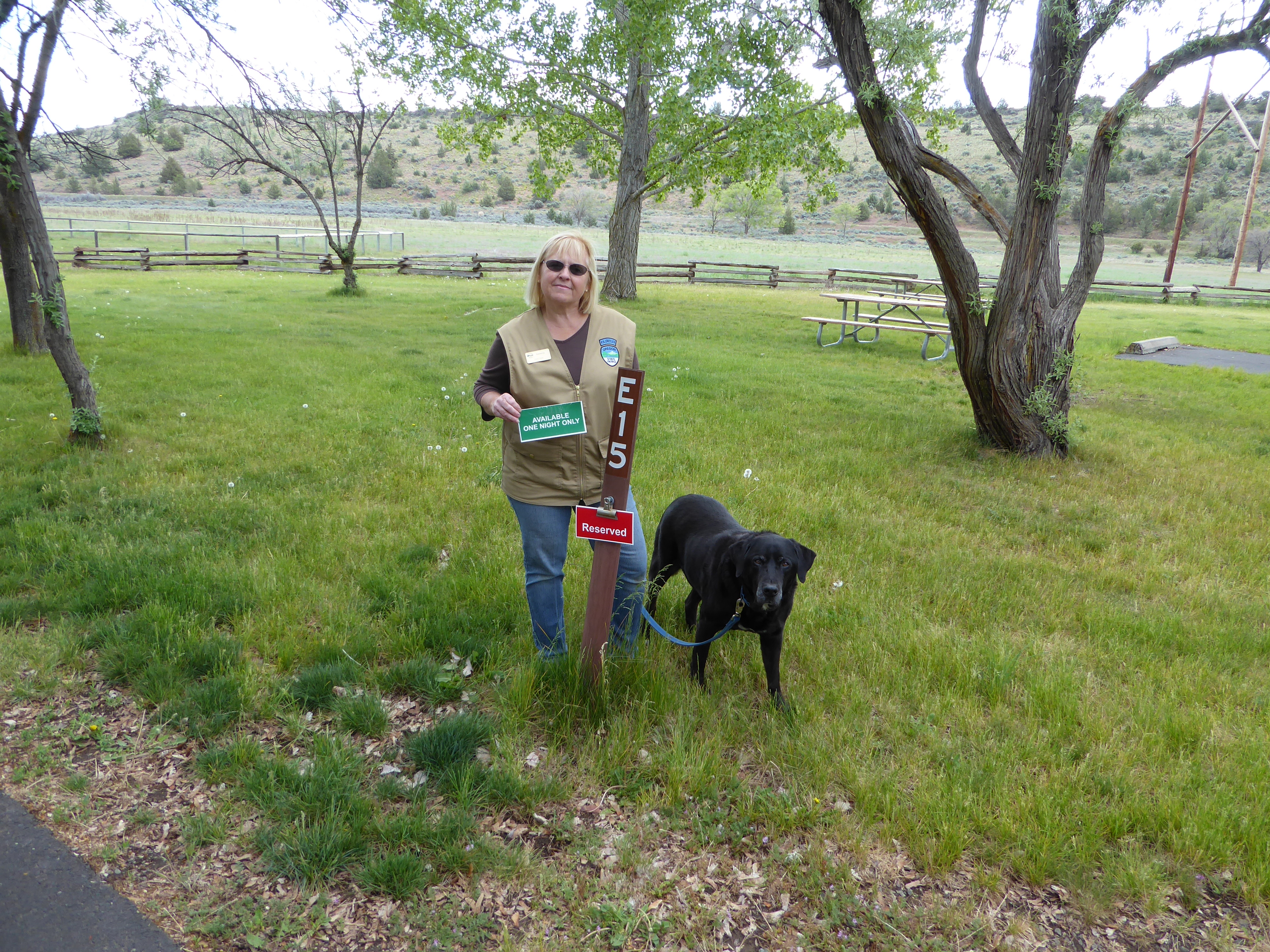 In the mornings, Elko helps me change camp site signs to reserved or available.