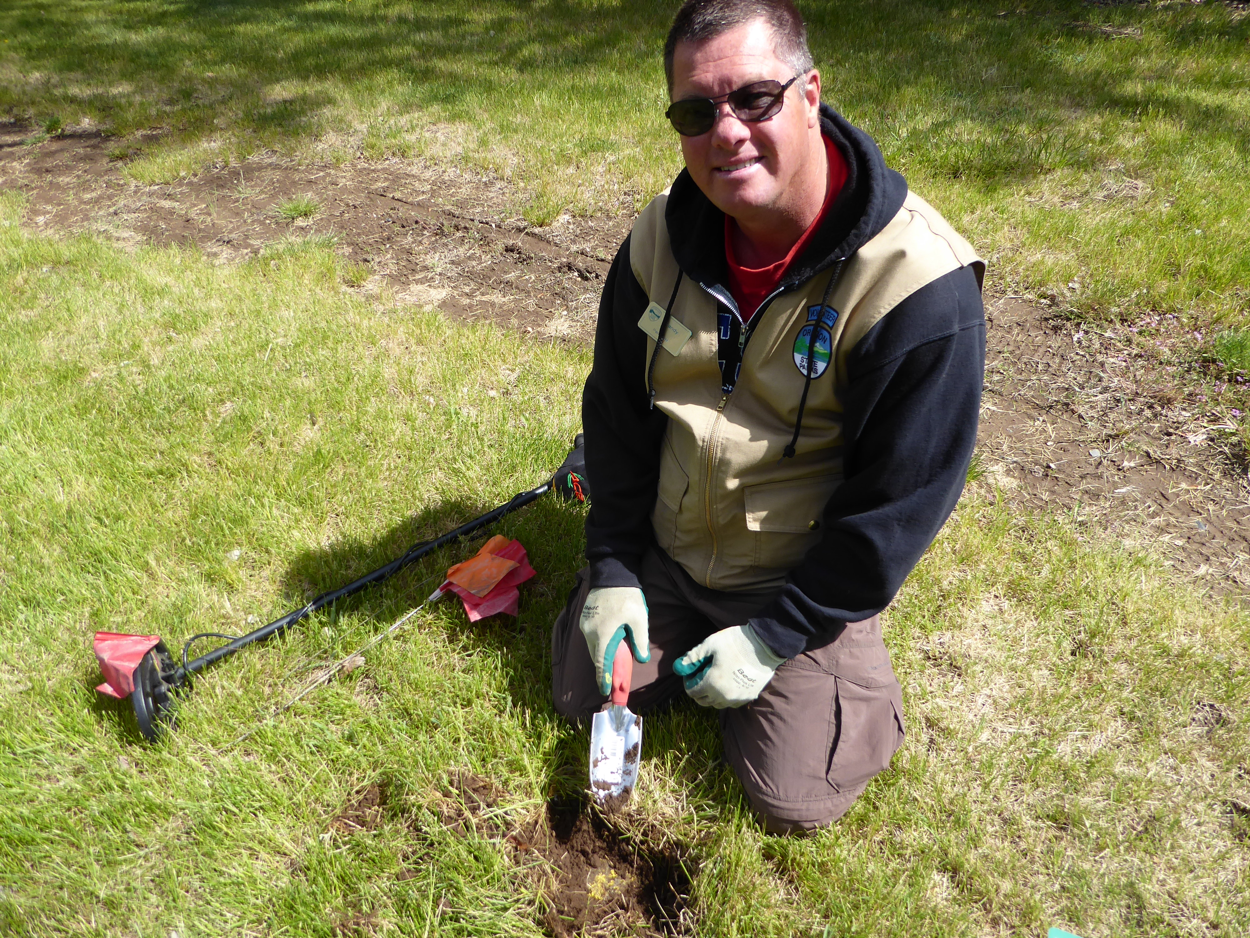 He has also used one of his own toys, his metal detector, to find irrigation couplers which have been overgrown by the grass over the years.