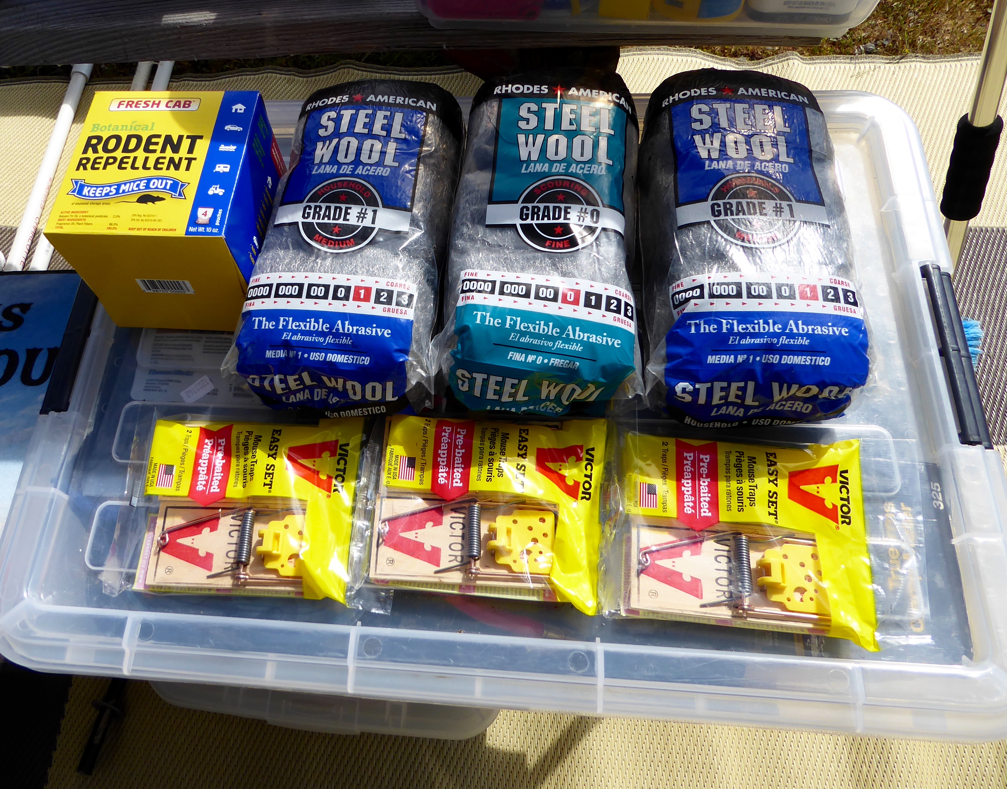 I’ll spare you all the details ( I don’t really want to re-live them) but the man ended up trapping two mice and tightened up our potential access points such that, if there is still a mouse in here, we don’t know how it would get out. We also have purchased deterrents for almost all senses – Fresh Cab packets that they supposedly don’t want to smell, an electronic attachment to our wiring giving magnetic pulses that they supposedly don’t want to feel, ultrasonic sound emitters that they supposedly don’t want to hear and of course, the traps for their sense of taste. The good news is that we’ve now gone 5 days and nights with no evidence of any additional stowaways – but the man is still looking and the woman is still sleeping with the light on!