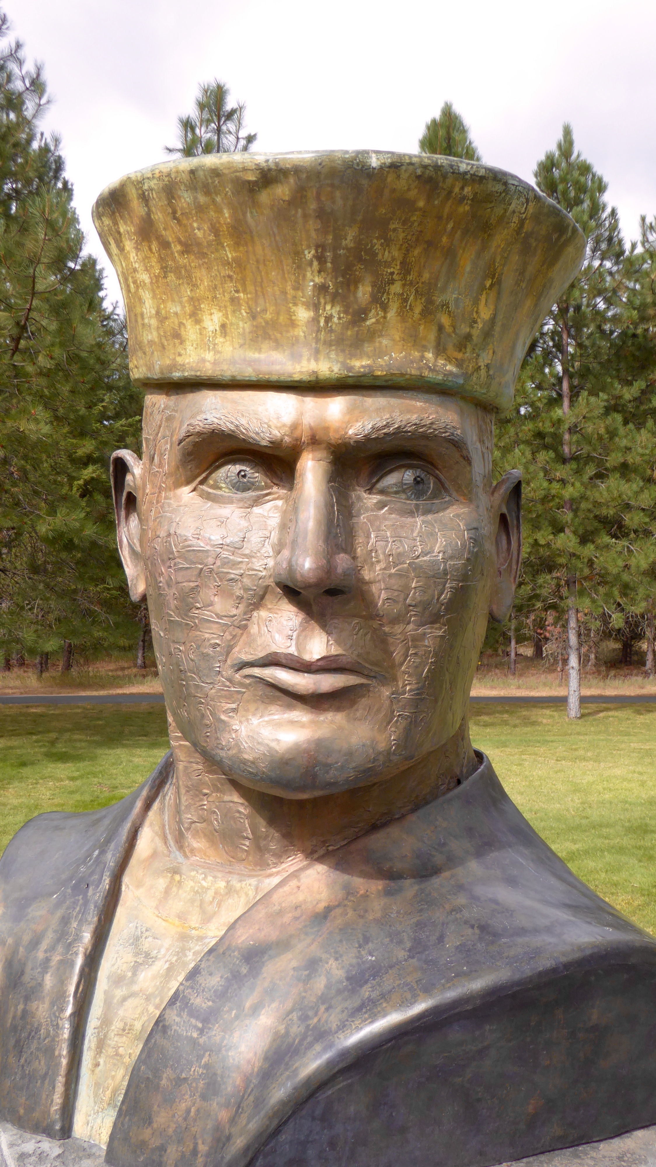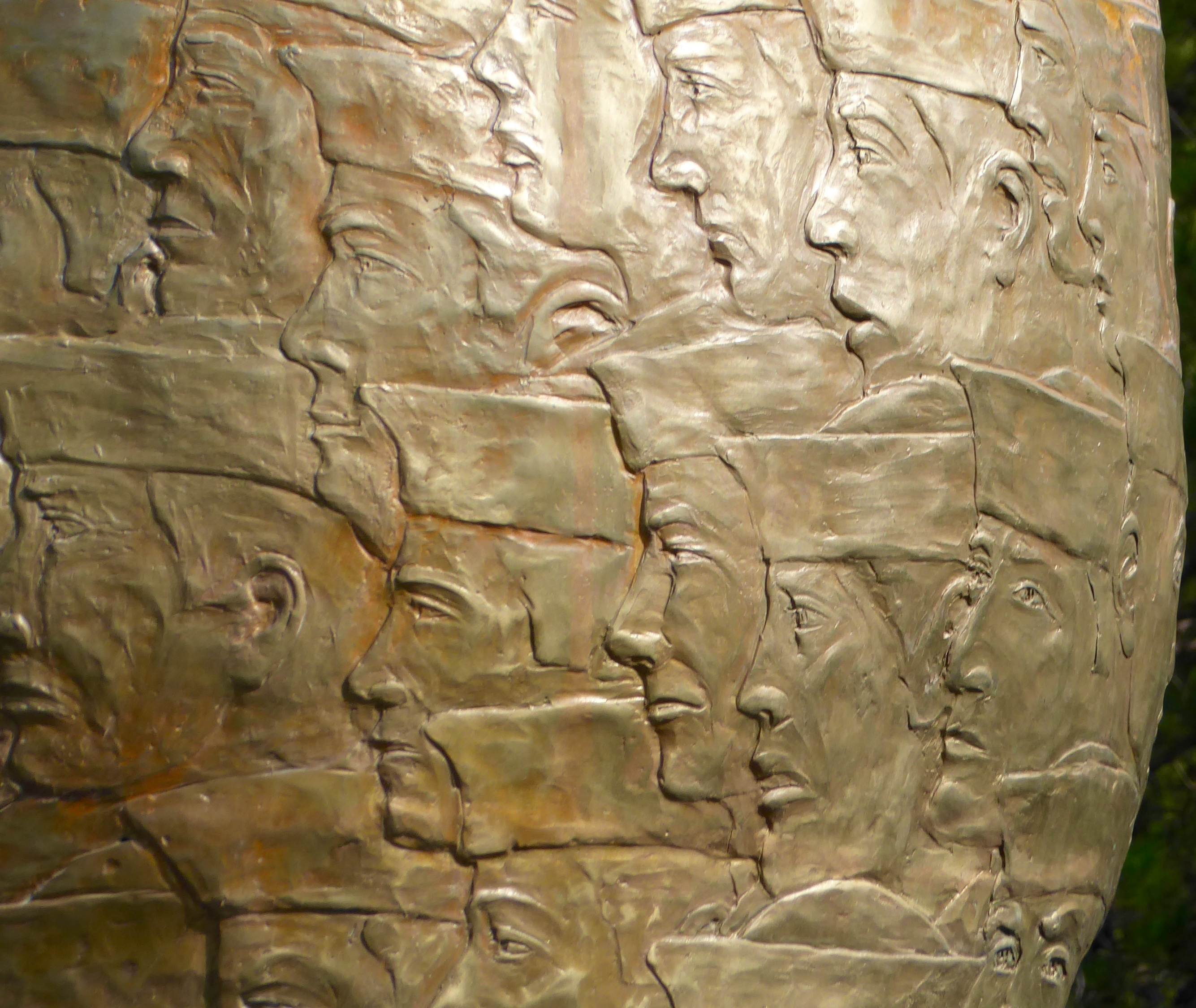 Profiles of some of the men are engraved within the sculpting of this large statue near the Brig.
