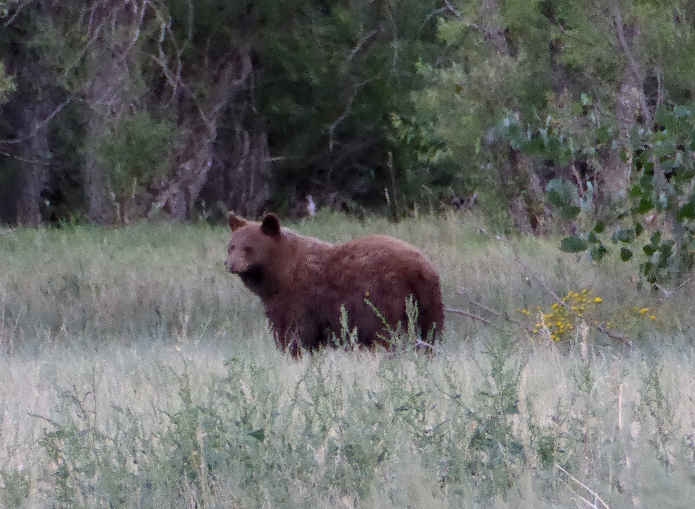 Then we say a mama bear and cub. We wondered at first if these were grizzly because of their coloring but comparing humps and other things, we believe they were (brown) black bears. We don’t see bears in the wild very often so we were very pleased! We watched them for about 5 -10 minutes.
