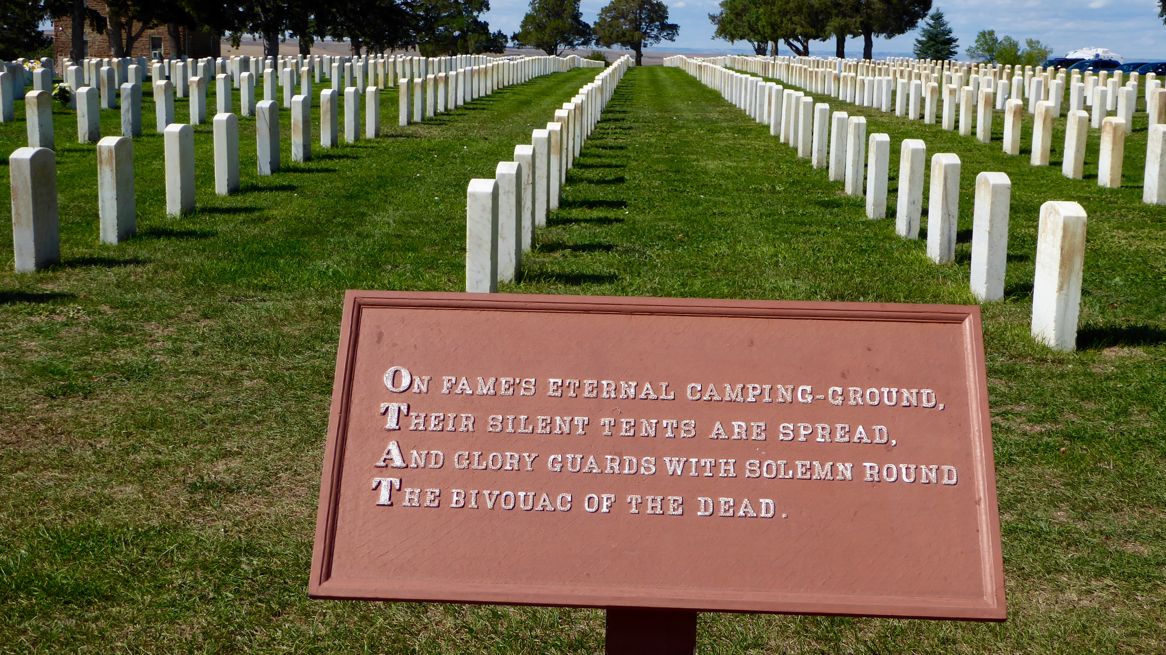 Also on the grounds is the Custer National Cemetery. The original cemetery was for those who had been buried at western outposts, since abandoned. The dead were moved to this site. Over time veterans and spouses from World Wars I and II, Korea and Vietnam were buried at this National Cemetery. There are 5000 sites, only about 50 (which are reserved) are left to be occupied.