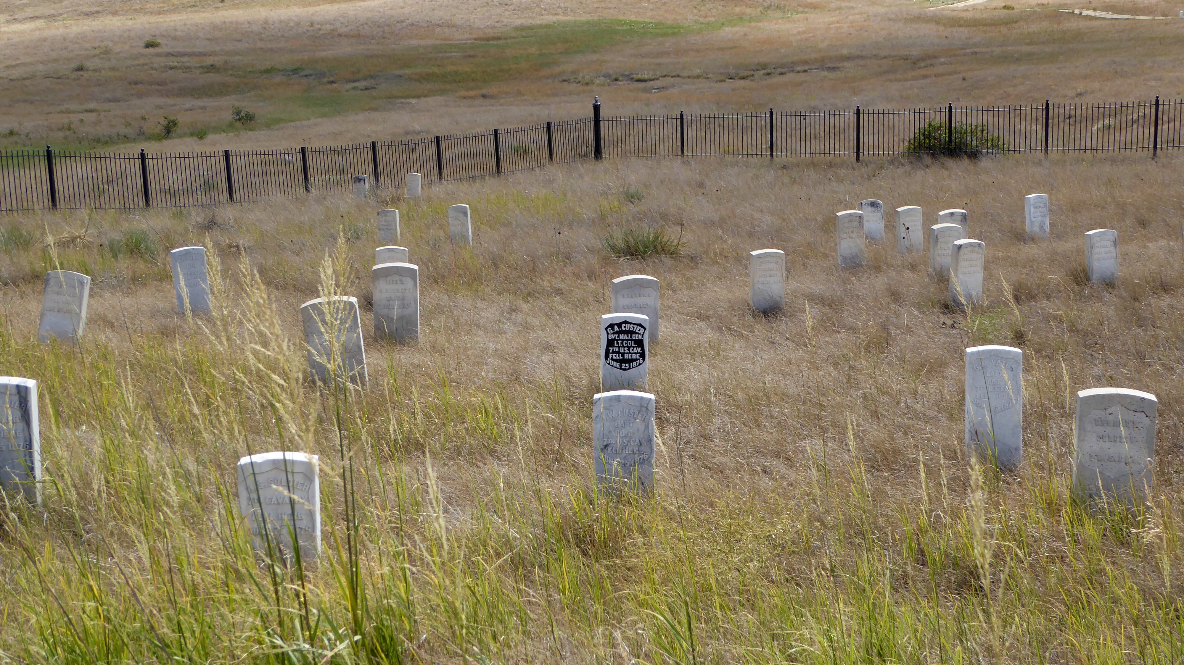 There are about 45 on Last Stand Hill. George Armstrong Custer’s marker is the dark one.