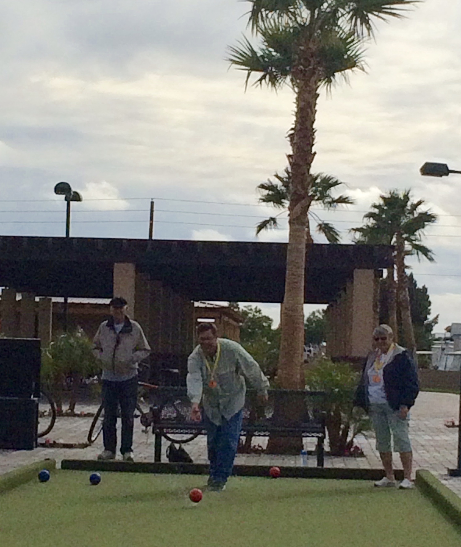 There are many activities here in the park and we have been partaking in a variety of them. The only time this week that the Sports Complex schedule and the weather matched up nicely for us was the afternoon they were teaching Bocci ball. We really enjoyed learning the basics of the game and liked that the rules are quite simple. There is lots to learn regarding technique and strategy, but the rules are simple!