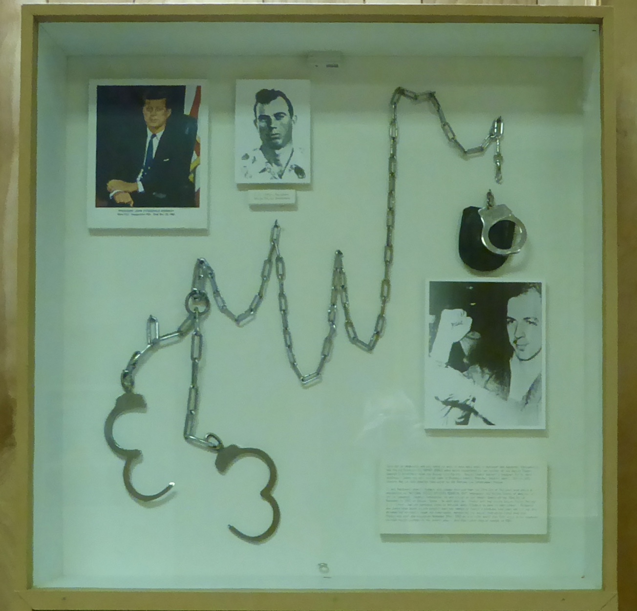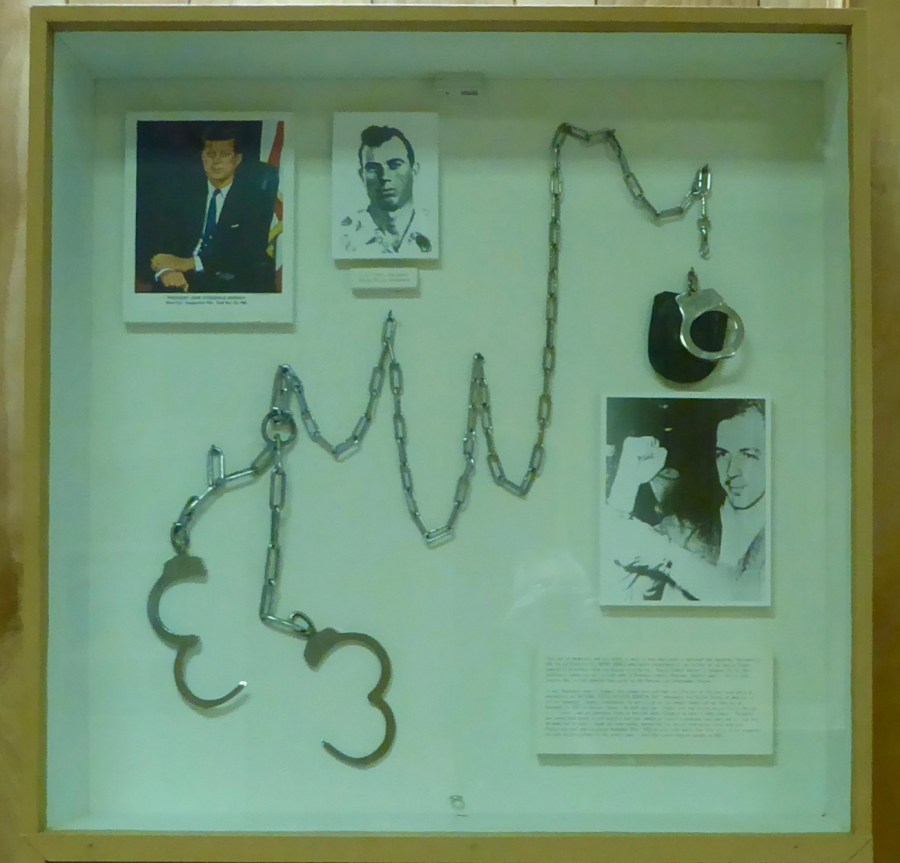 These handcuffs held Lee Harvey Oswald after he was arrested for killing President Kennedy. They are on display at the prison.