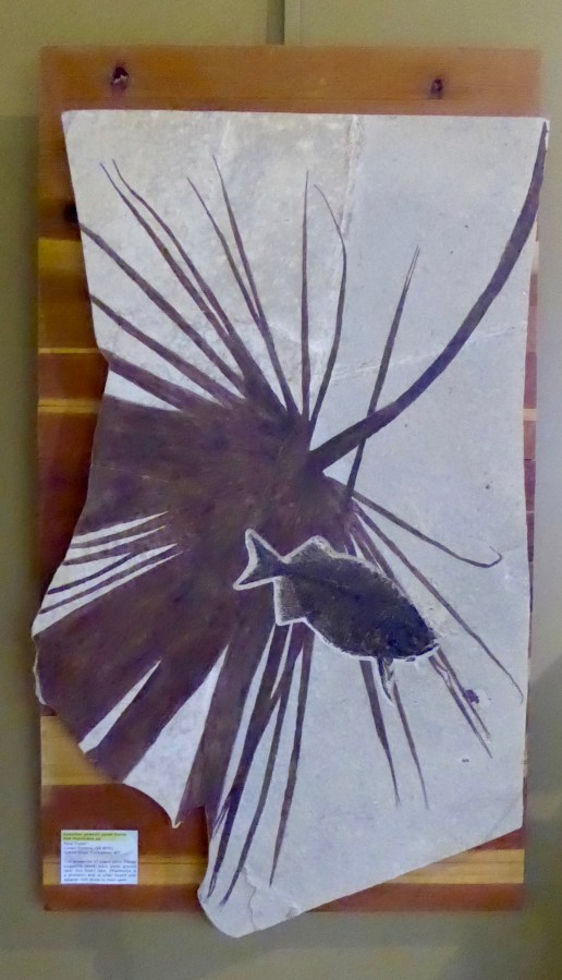 This fossil of a palm frond and phareodus looks more like a piece of art!