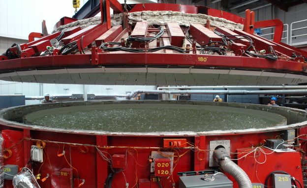 Temperatures inside this giant oven will reach 2,100 degrees Fahrenheit. Large blocks of glass inside the oven will melt as the whole oven spins around at a rate of five times per second, creating a curved and smooth telescope mirror.