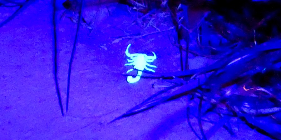 Another night we went to hunt scorpions. This was the only one we saw and it was about one inch long.