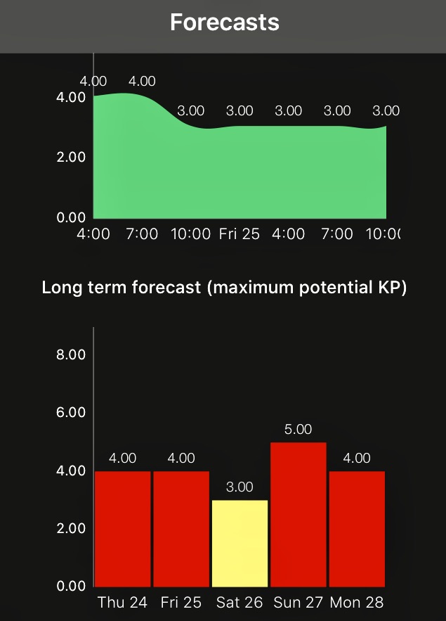 We learned about KP levels (how far the solar activity would spread) and had websites and apps to monitor viewing potentials. The highest KP levels were supposed to be near the end of our trip but activity was possible at any time as long as the night skies were clear.