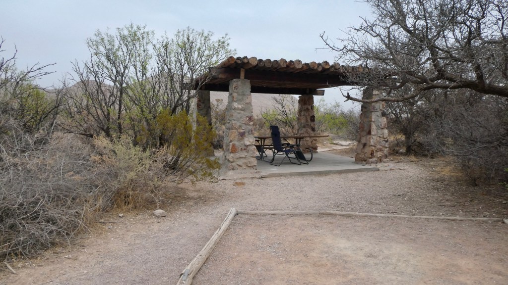 Campsites and day use picnic sites have ramadas for shade. Ours was labeled as an Eagle Scout project from 1999.