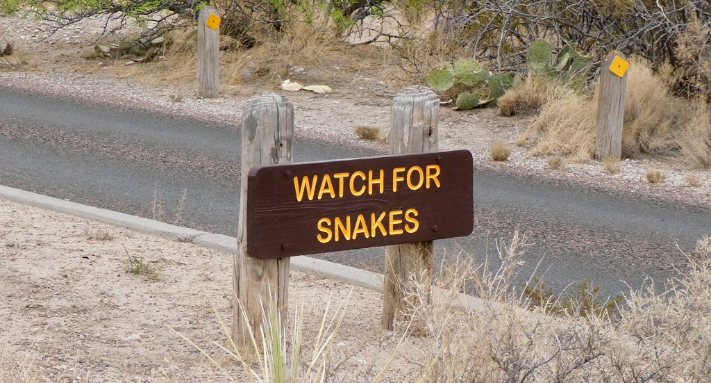 We saw this sign right off.  Do they really think I EVER stop looking for snakes.  No!  NOT EVER!