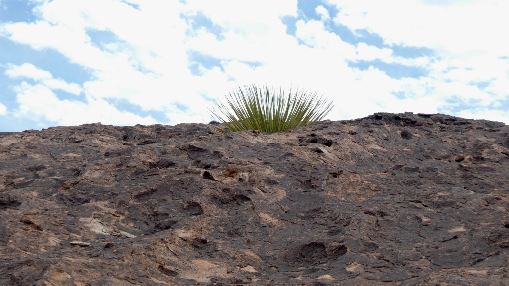 As we went around a boulder we were surprised by a man being RIGHT THERE.Β  He was bouldering, which looks a lot like free climbing. That isn’t a world we live in so if there is a differences we don’t know it. Hueco Tanks is a premier bouldering site but its coexistence with the archeology seems tenuous given the potential for damage.