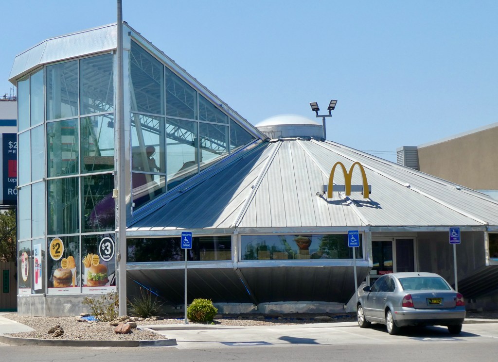 We missed McDonald’s all lit up like a flying saucer….
