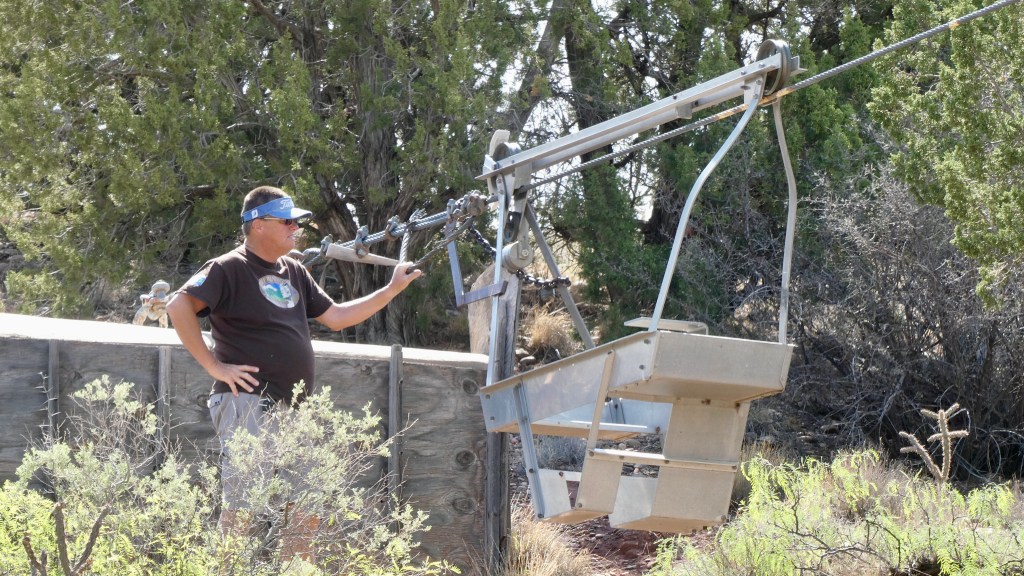 Randy tried to see how this contraption might have worked carrying people or gear across the river. From this side it was clear enough – gravity works. He never did figure out how it would return but it likely hasn’t been used for years so some parts may be missing.