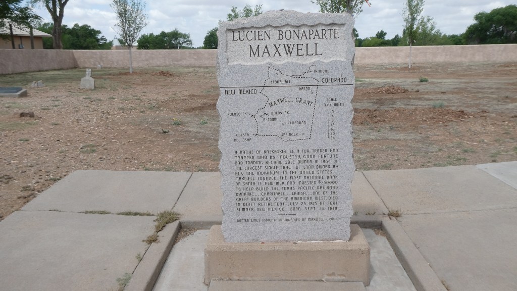 Lucien Bonaparte Maxwell is also buried in the Fort Sumner Cemetery.  He was once the largest landowner in the United States with massive holdings of 1,700,000 acres.  (The dispersal of this land in a variety of grants was ultimately decided by the United States Supreme Court.)