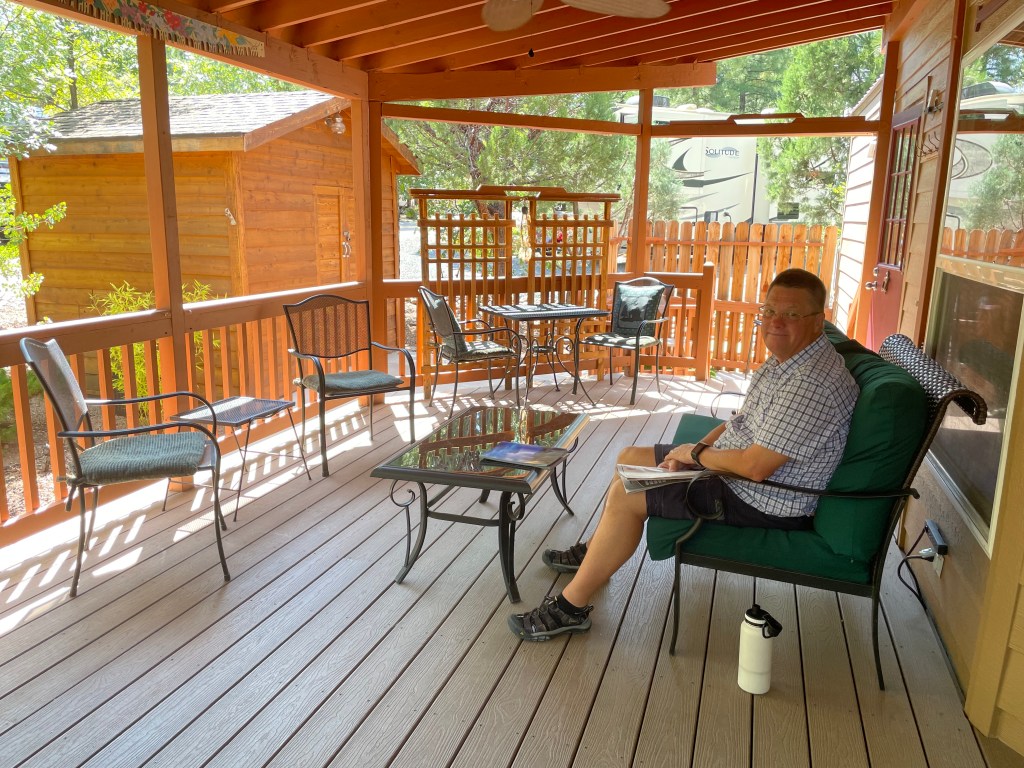 Your cabin looks perfect for the two of you. Randy has his “ playhouse” and you have yours. 😏 So nice to reap your rewards from now on and that deck looks fabulous. Lovely spot to escape the heat in.