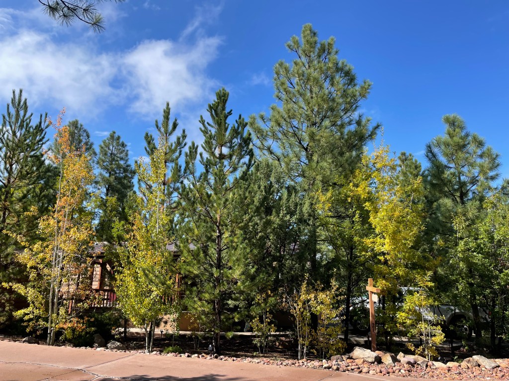 When we left the cabin last week, the aspen leaves were starting to turn color. Randy winterized the cabin and we heard that it snowed a day or two later. We have tentative plans to drive up for a few days this winter and see how it is to be there with snow. We bought a snow shovel just in case.