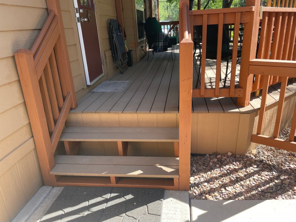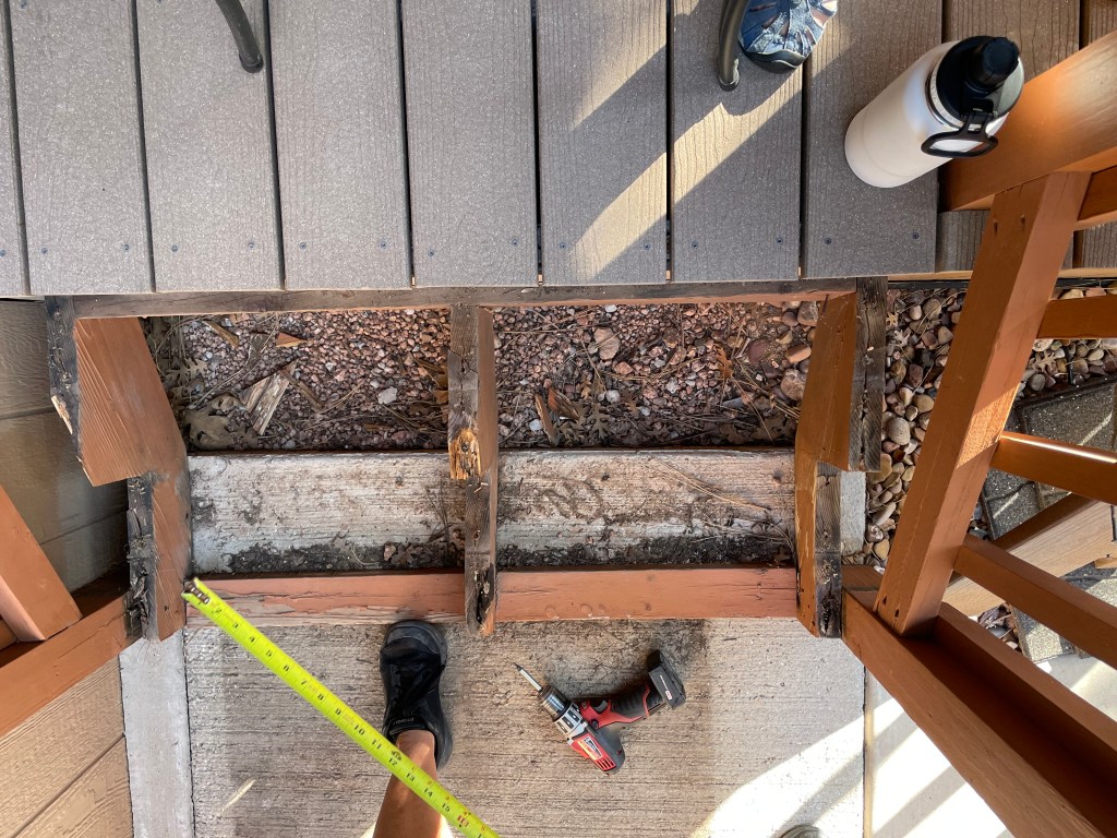He discovered that the stair supports (stringers) for both the front and back stairs to the deck were rotting and needed to be replaced.