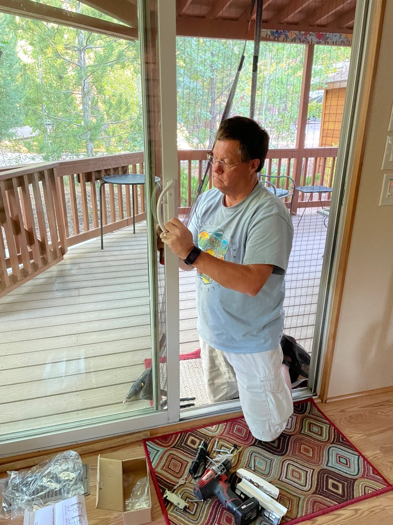 The sliding door lock was marginal so he replaced that. It was another project that doesn’t sound like it would take all day but did. He eventually won the battle.