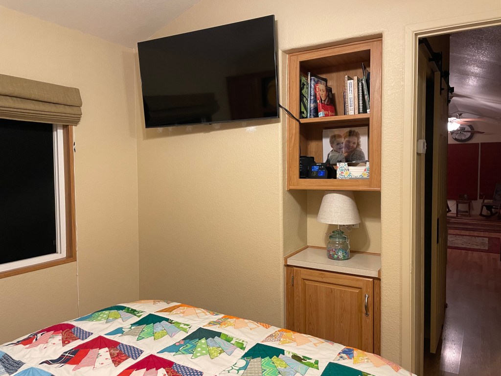 Then he installed our new bedroom TV. It s a little big for the room but better too big than too small!