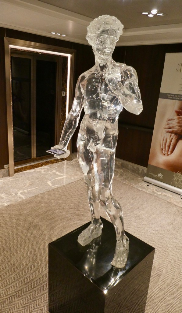 A take off on Michelangelo’s David – this one with a cell phone, taking a selfie. Spoiler alert: We see the real thing later!