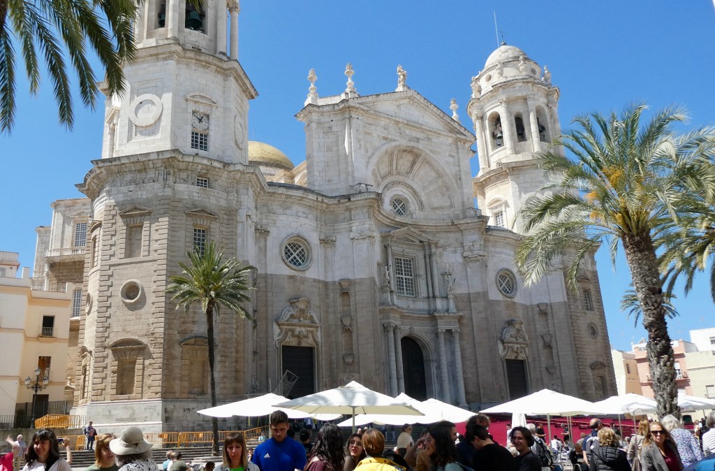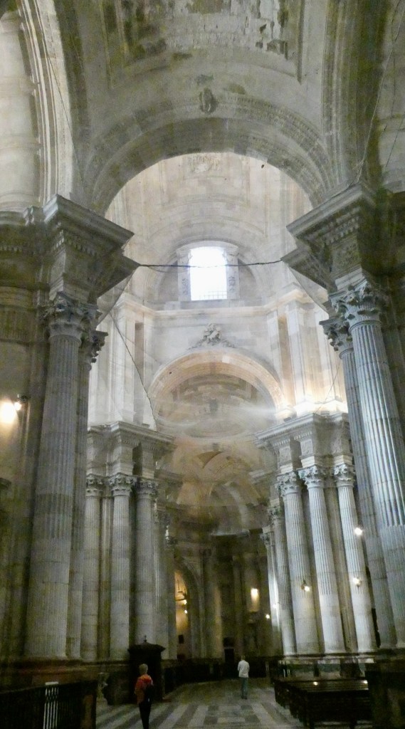 This is the “Catedral de CadÌz”, begun in 1722 and completed in 1838.  It is called the new cathedral because the 15th century cathedral was destroyed during a battle with the Dutch.