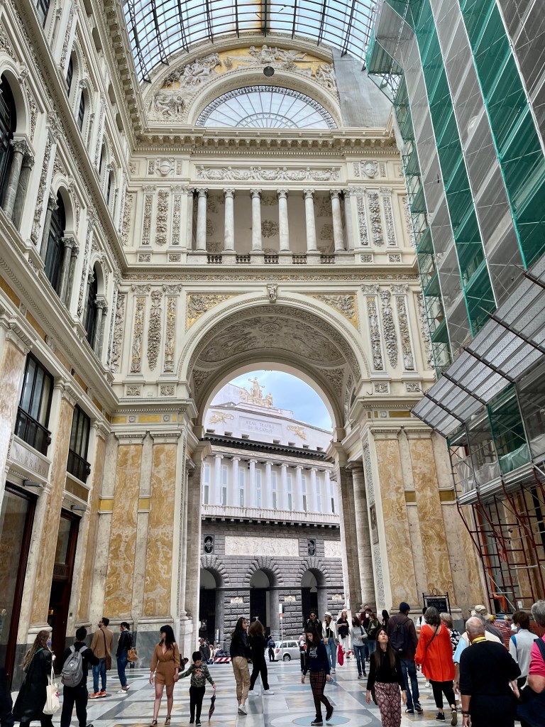 We walked through the Umberto Gallery for the first time.  The gallery was built in 1880, the same period as the Eiffel Tower.  It was built by King Umberto, (that second king of Italy who was Margherita’s husband), along with the rich families of Napoli, to give the people of Napoli something good after a bad cholera epidemic.