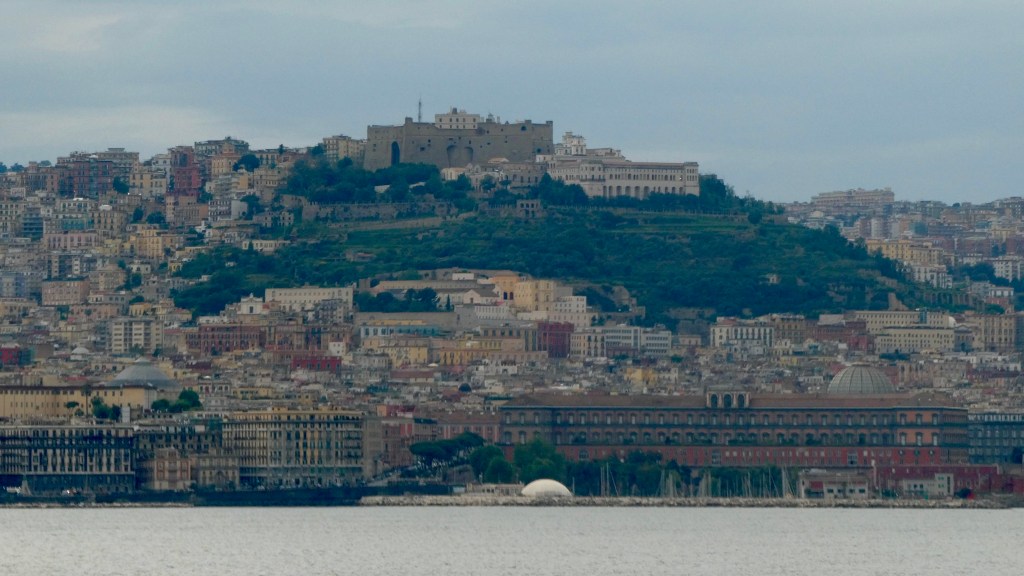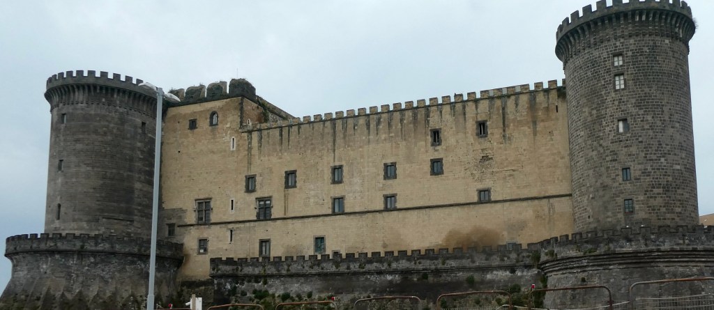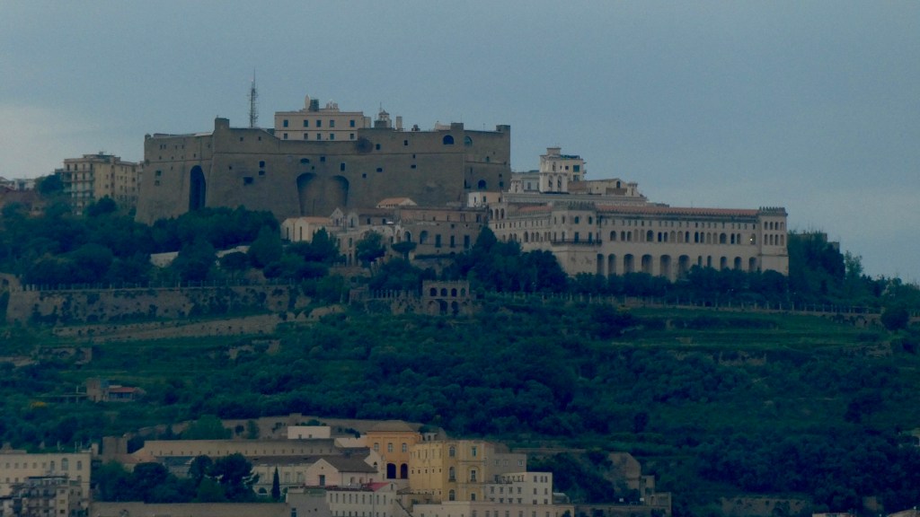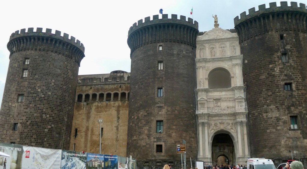 Napoli is the densest city (very little open space) in Europe and the third largest city in Italy. Napoli is in the red zone for the still active Mount Vesuvius.  The castle at water level is the “new” castle.