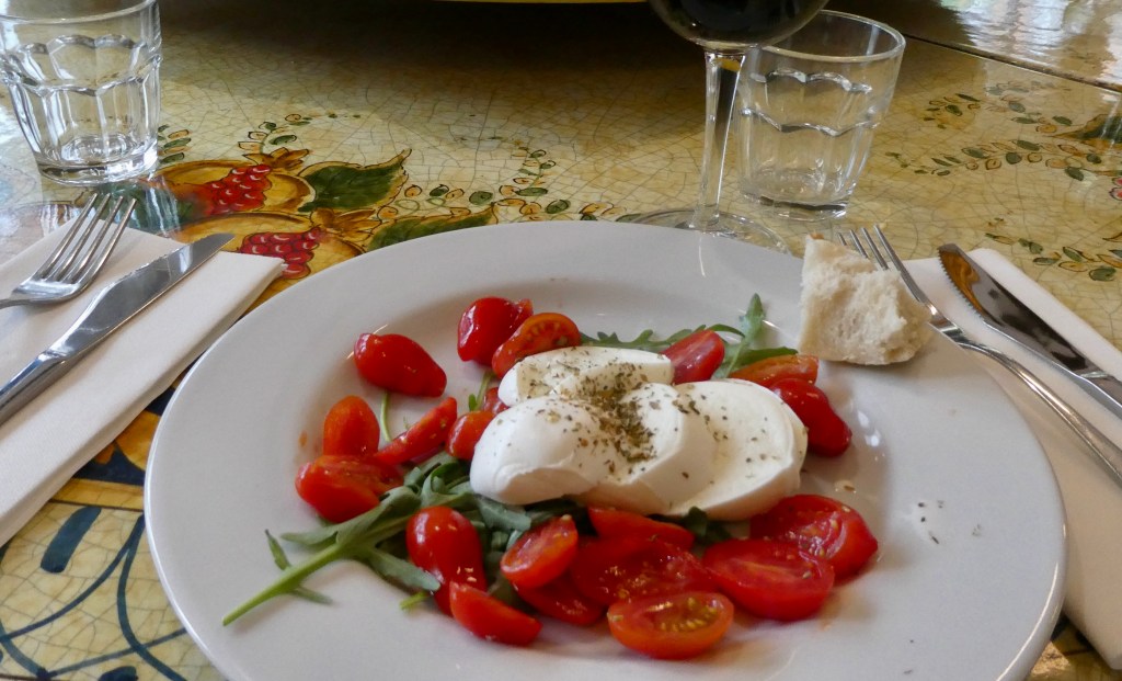 We had Caprese salad.  Italy is famous for tomatoes and mozzarella was invented in Napoli.  It was a delicious combination.