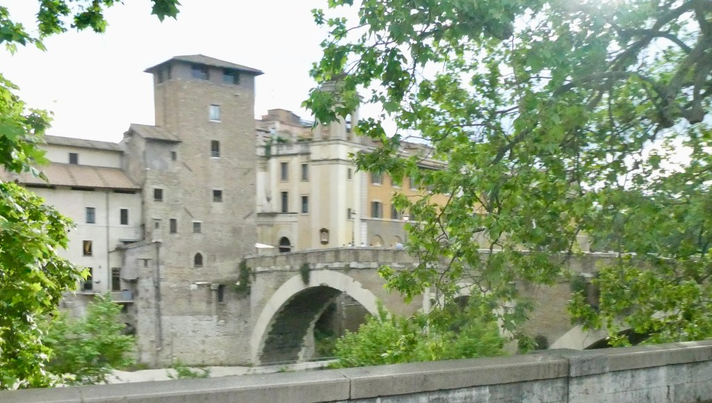 We saw the oldest bridge in Roma. It crosses the Tiber River and dates back to 100 years BC.