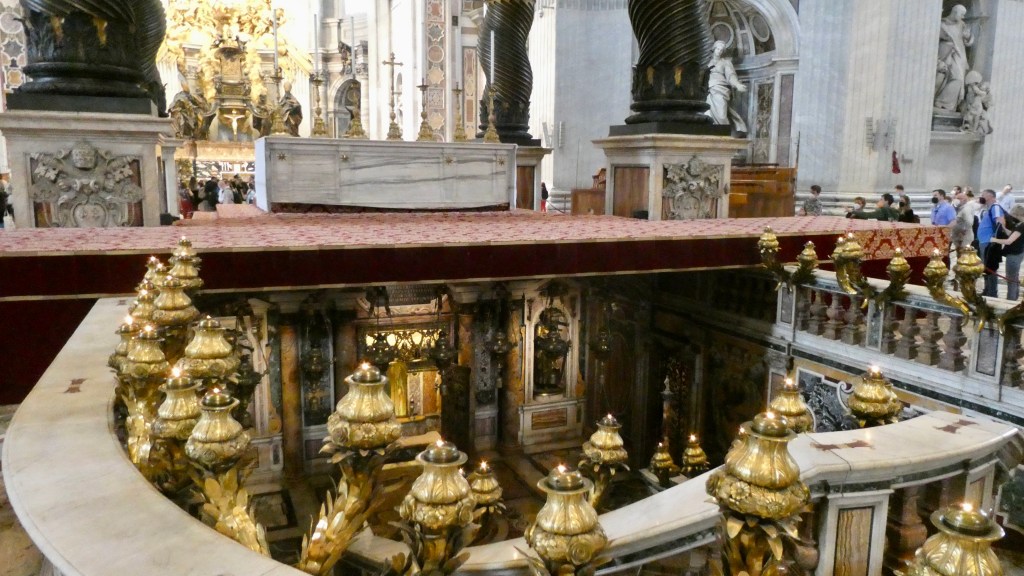 The altar sits directly above St Peter. It is possible to go below to see the tomb, as well as many others, but we did not. Darn.