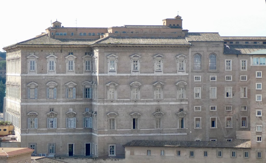 The Vatican is the headquarters of the Roman Catholic Church and is home to the pope. The top row of windows are those of the papal apartment however the current pope, Francis, chooses to live in the more humble clergy quarters.