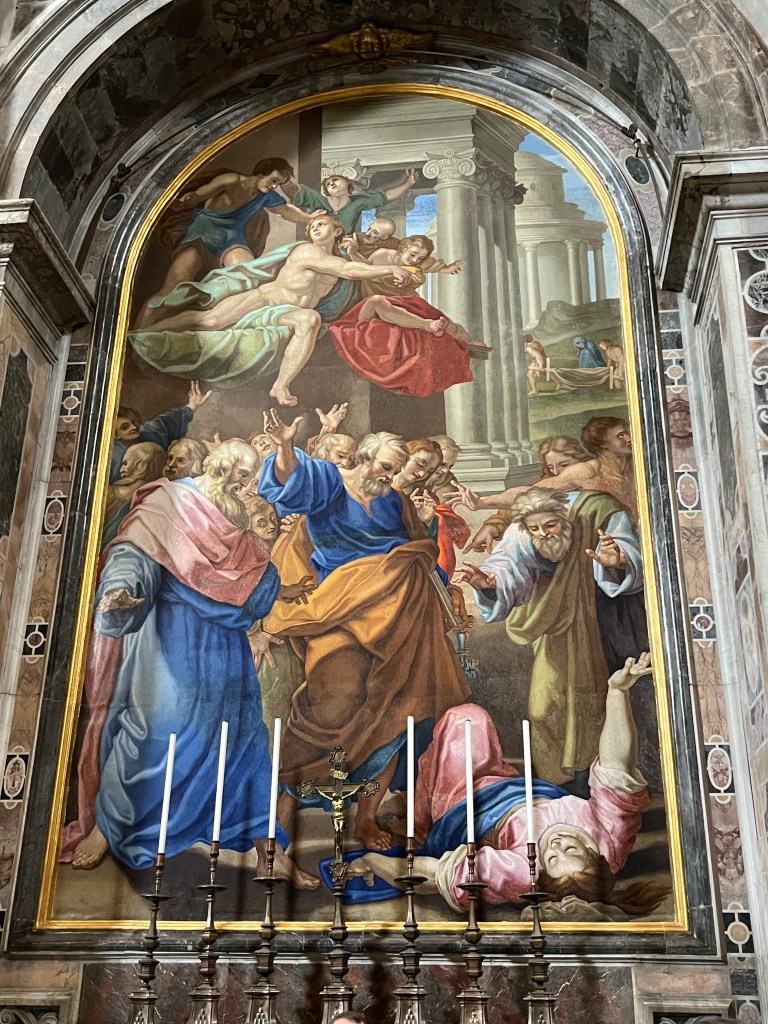 Our morning continued with a timed entry into the Sistine Chapel, famous for Michelangelo’s ceiling. This chapel is also where conclave is held for electing a new pope. Think white or black smoke.